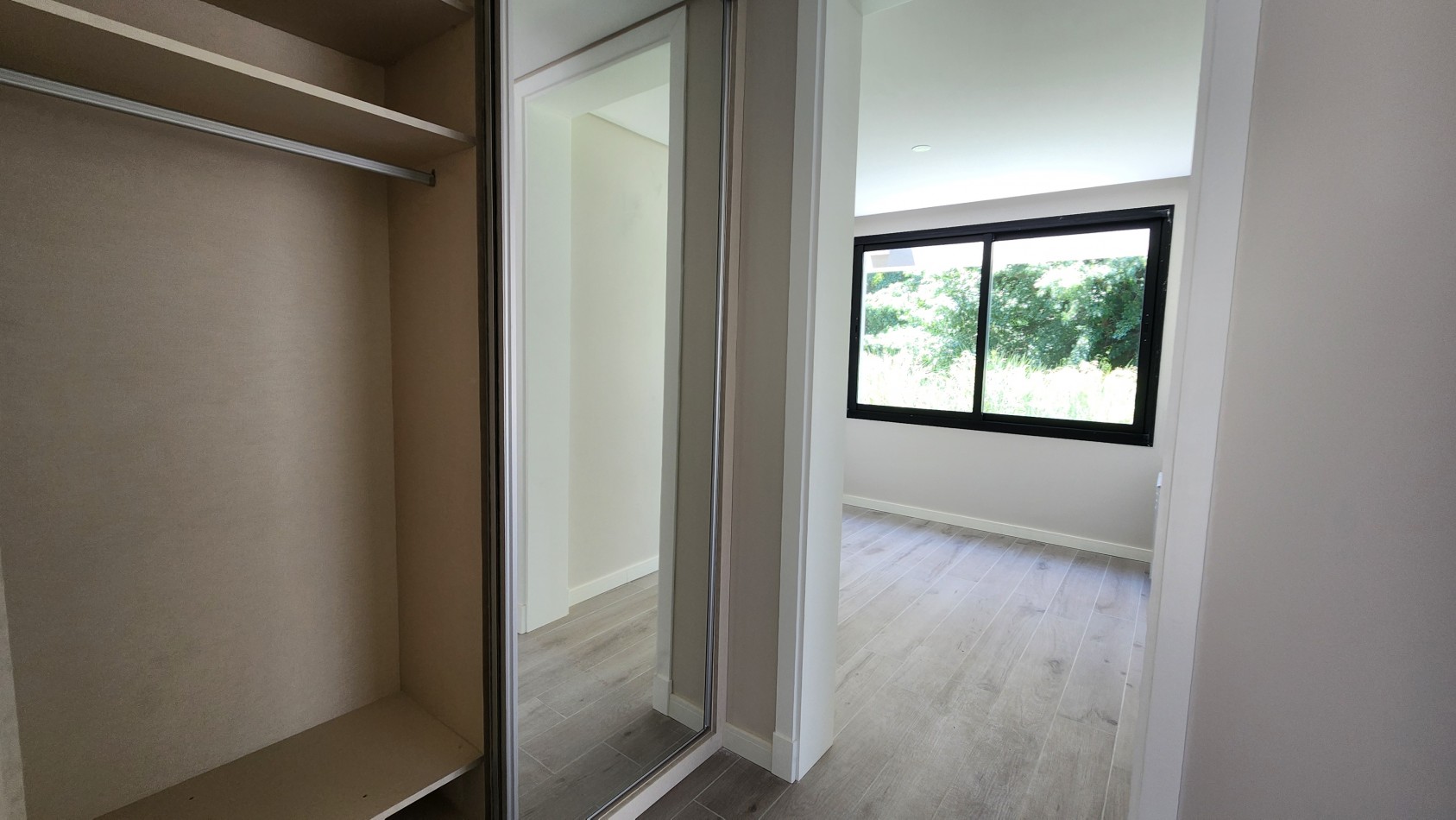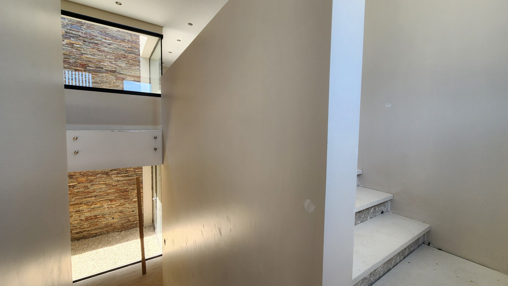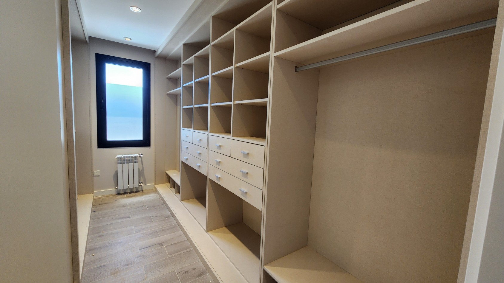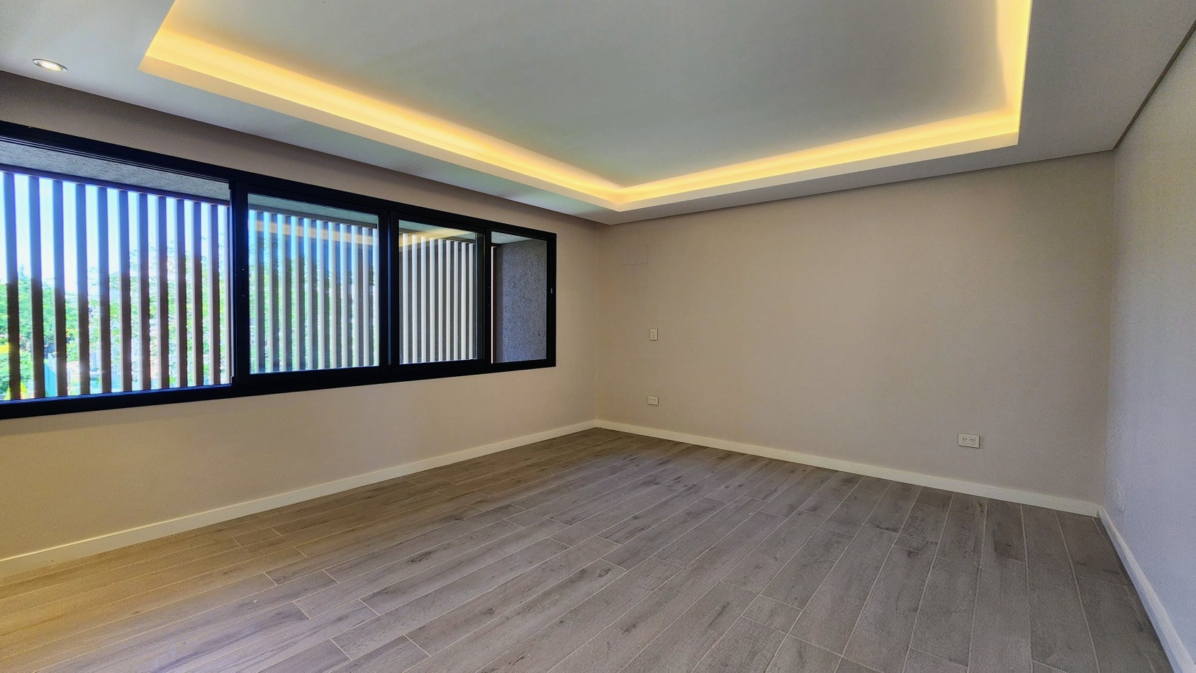 Subiendo la escalera, se encuentra un amplio distribuidor con espacio de escritorio, ideal para trabajar o estudiar. La planta alta cuenta con tres dormitorios, incluyendo un dormitorio principal con vestidor, antebaño y baño, todo con materiales de alta calidad y terminación premium. Los dormitorios secundarios también tienen placares y terminación de calidad premium. Un baño para las habitaciones secundarias, ofrecen comodidad y practicidad.