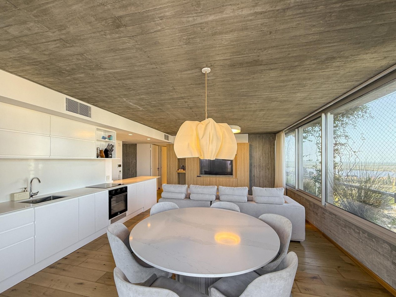 Calidades premium con una estructura de hormigón visto y maceteros verdes más riesgo artificial, aberturas de alta prestación en aluminio con DVH, pisos de madera de ingeniería en combinación con porcelanato para espacios húmedos, agua caliente central y climatización por aire con equipos VRV más losa radiante eléctrica en los baños, mucho espacio de guardado con placares terminados con interiores colocados, cocinas de diseño íntimo, mesadas de silestone, horno y anafes eléctricos diferenciados, bacha de acero inoxidable y mobiliario completo de piso a techo con bajo mesada más alacenas. Baños con loza sanitaria y griferías de primeras marcas, bañera o duchador, espejo colocado.