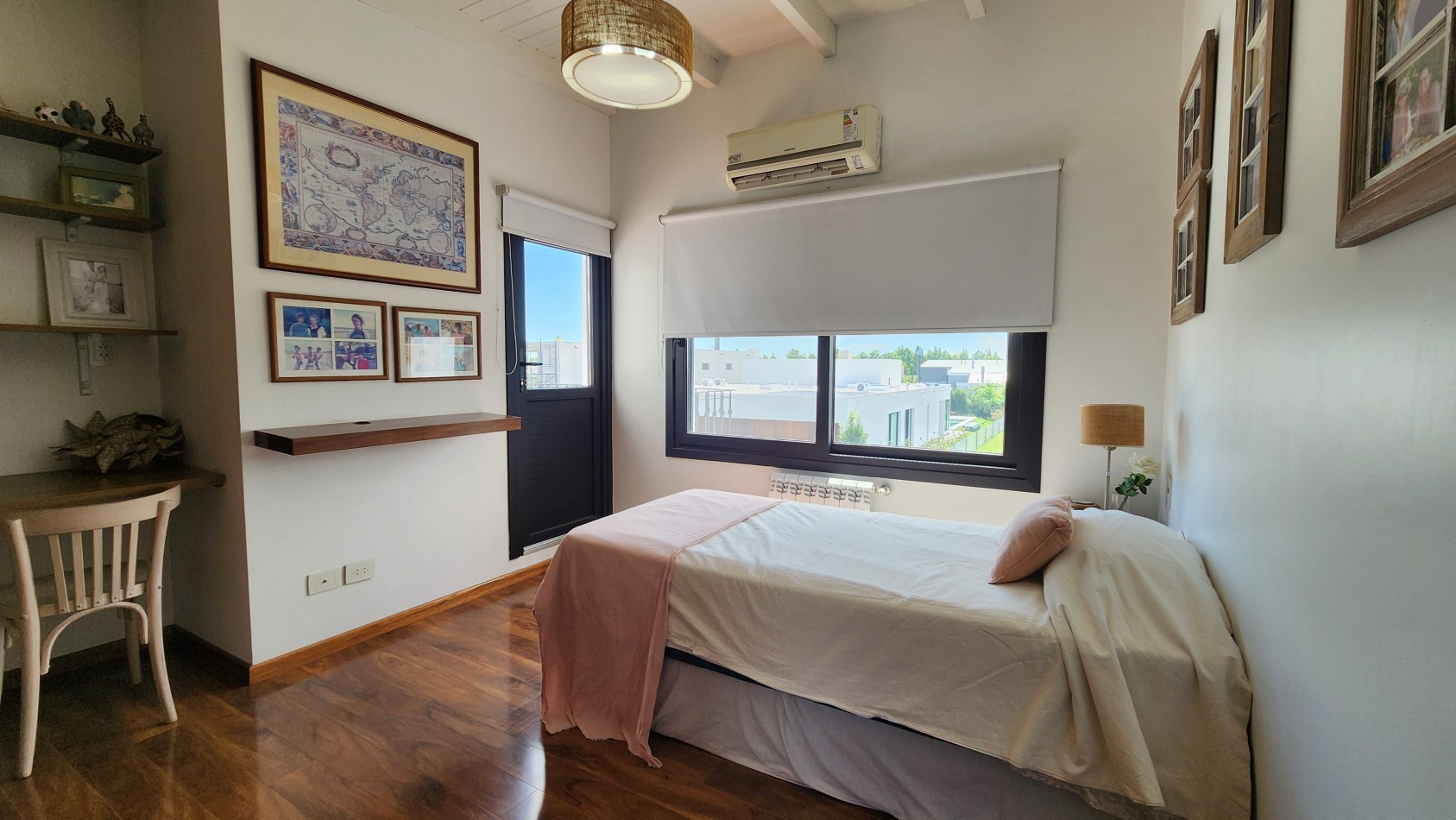 En el área intima, una escalera nos comunica con la planta alta donde nos encontramos con 3 dormitorios, dos asistidos por un baño completo con ante baño y un dormitorio principal en suite con vestidor.