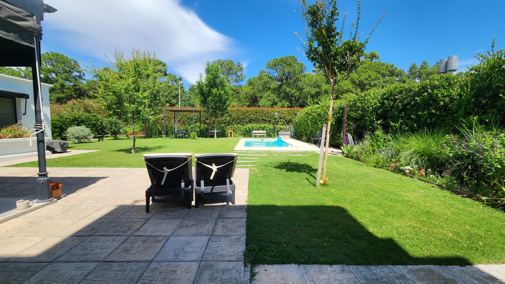 Afuera un amplio jardín con frondosa y desarrollada vegetación rodean la pileta.