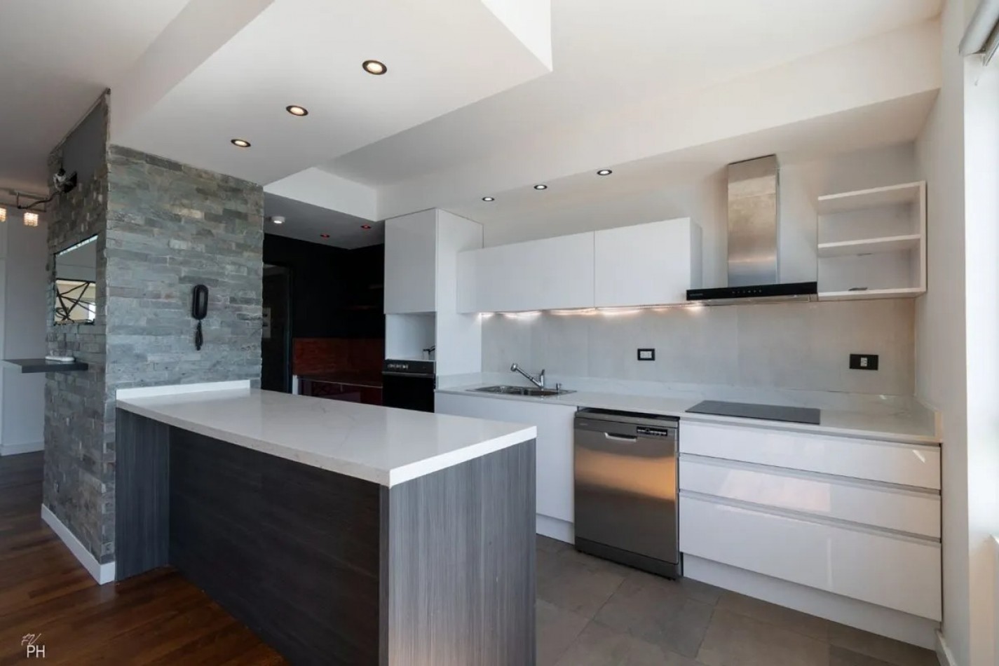 La cocina es semi-integrada, equipada con mobiliario de calidad premium, mesadas de silestone, barra desayunadora y lavavajillas. Lavadero independiente.