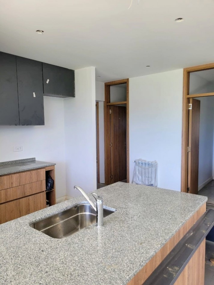 Las terminaciones son de muy buena calidad, con pisos de porcelanato, griferías FV, aberturas DVH, calefacción mediante radiadores, y pre-instalación de aire acondicionado. La cocina posee muebles completos, mesadas, alacenas, horno y anafe.