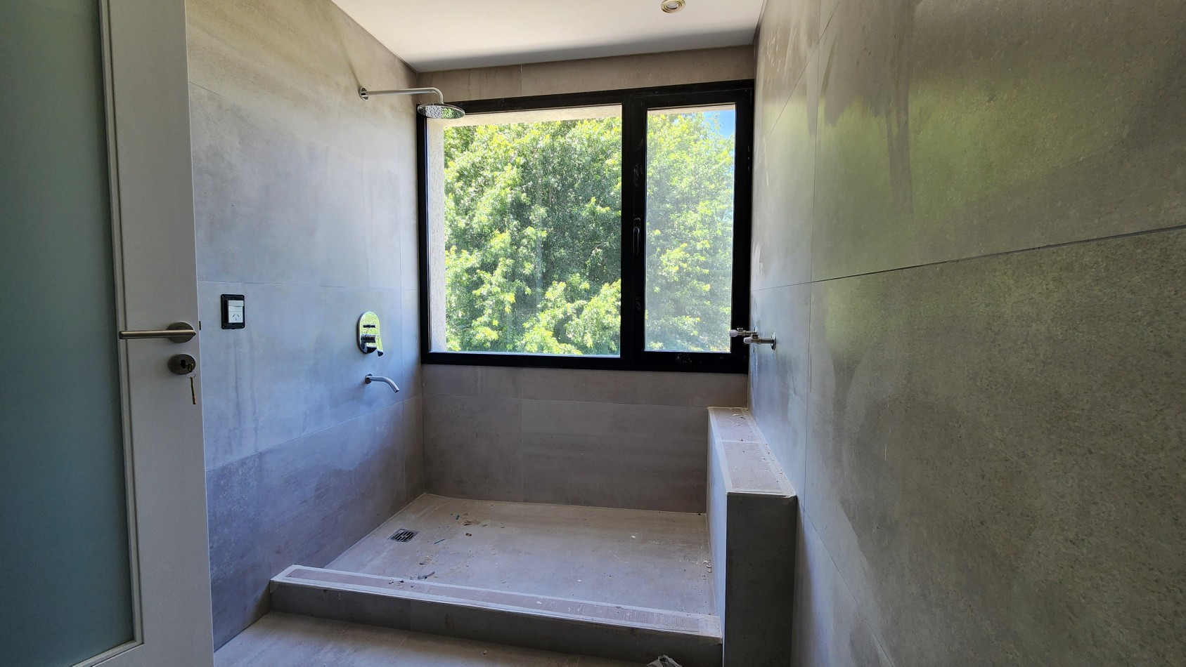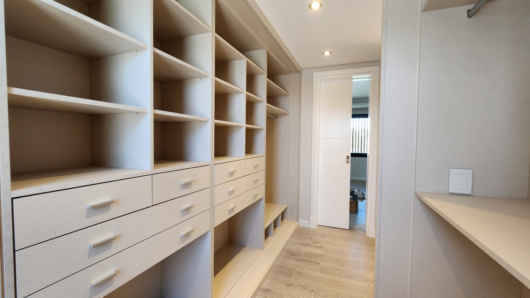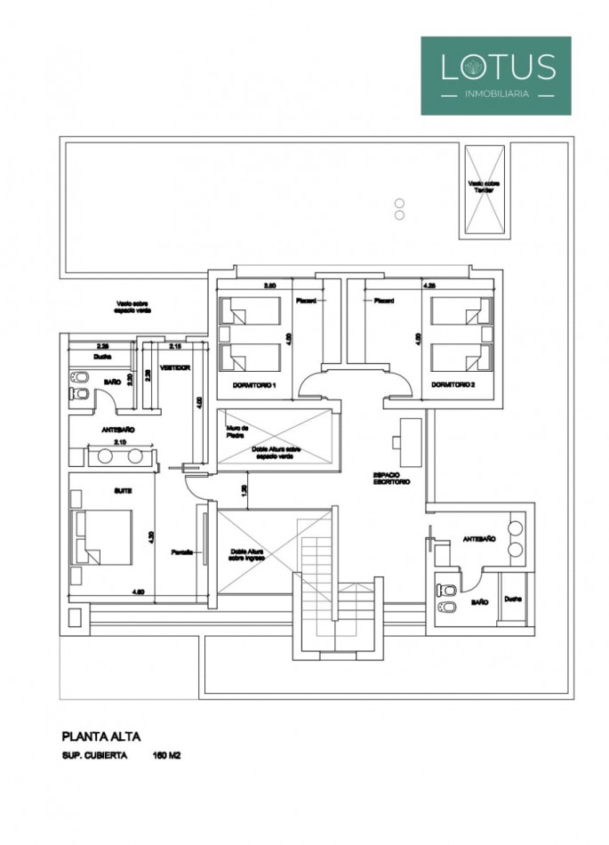 Subiendo la escalera, se encuentra un amplio distribuidor con espacio de escritorio, ideal para trabajar o estudiar. La planta alta cuenta con tres dormitorios, incluyendo un dormitorio principal con vestidor, antebaño y baño, todo con materiales de alta calidad y terminación premium. Los dormitorios secundarios también tienen placares y terminación de calidad premium. Un baño para las habitaciones secundarias, ofrecen comodidad y practicidad.