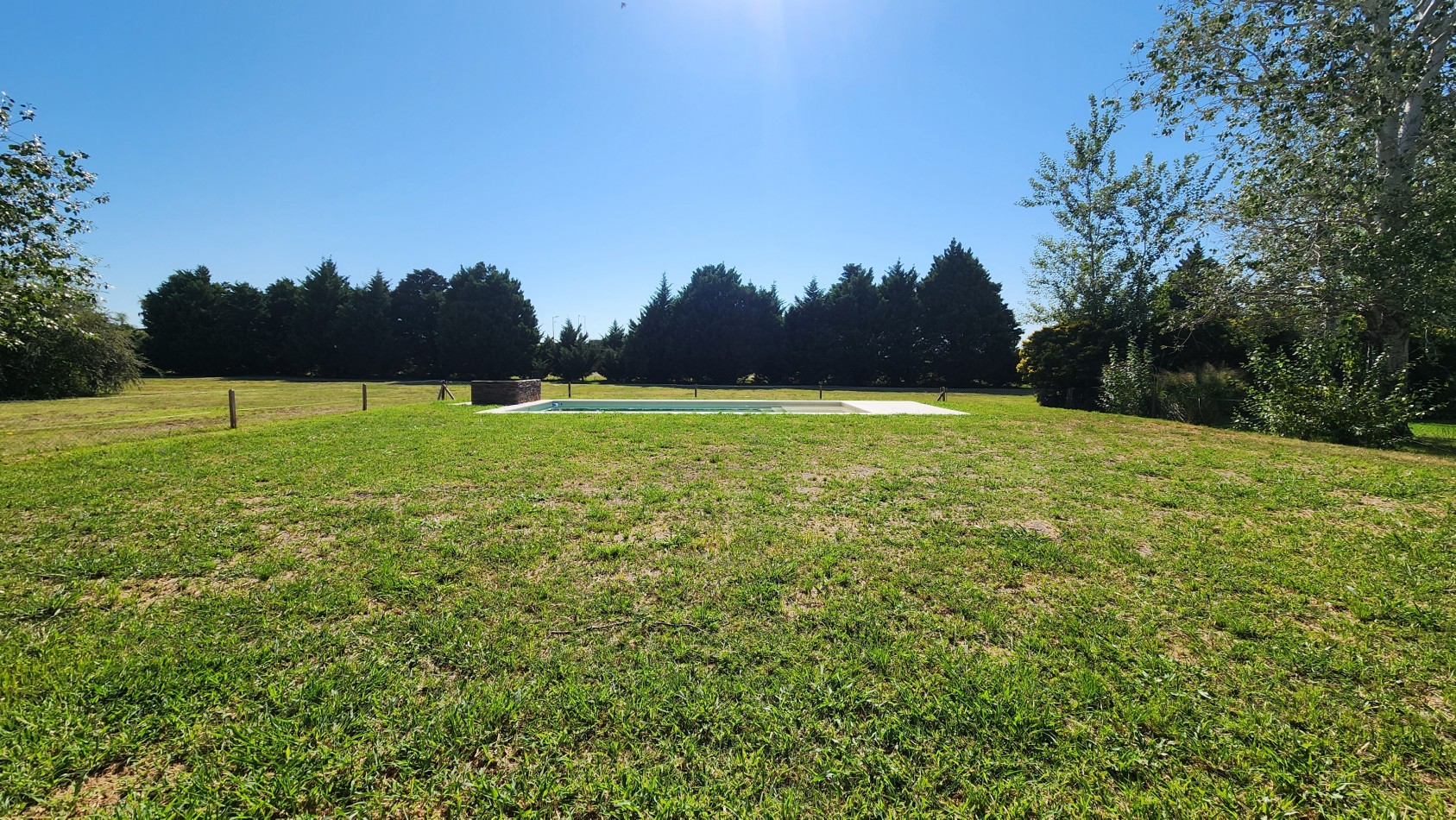 En el exterior, una impresionante pileta se encuentra en el fondo del parque, rodeada de espacios verdes y tranquilos. El parque amplio es ideal para disfrutar de la naturaleza y relajarse.