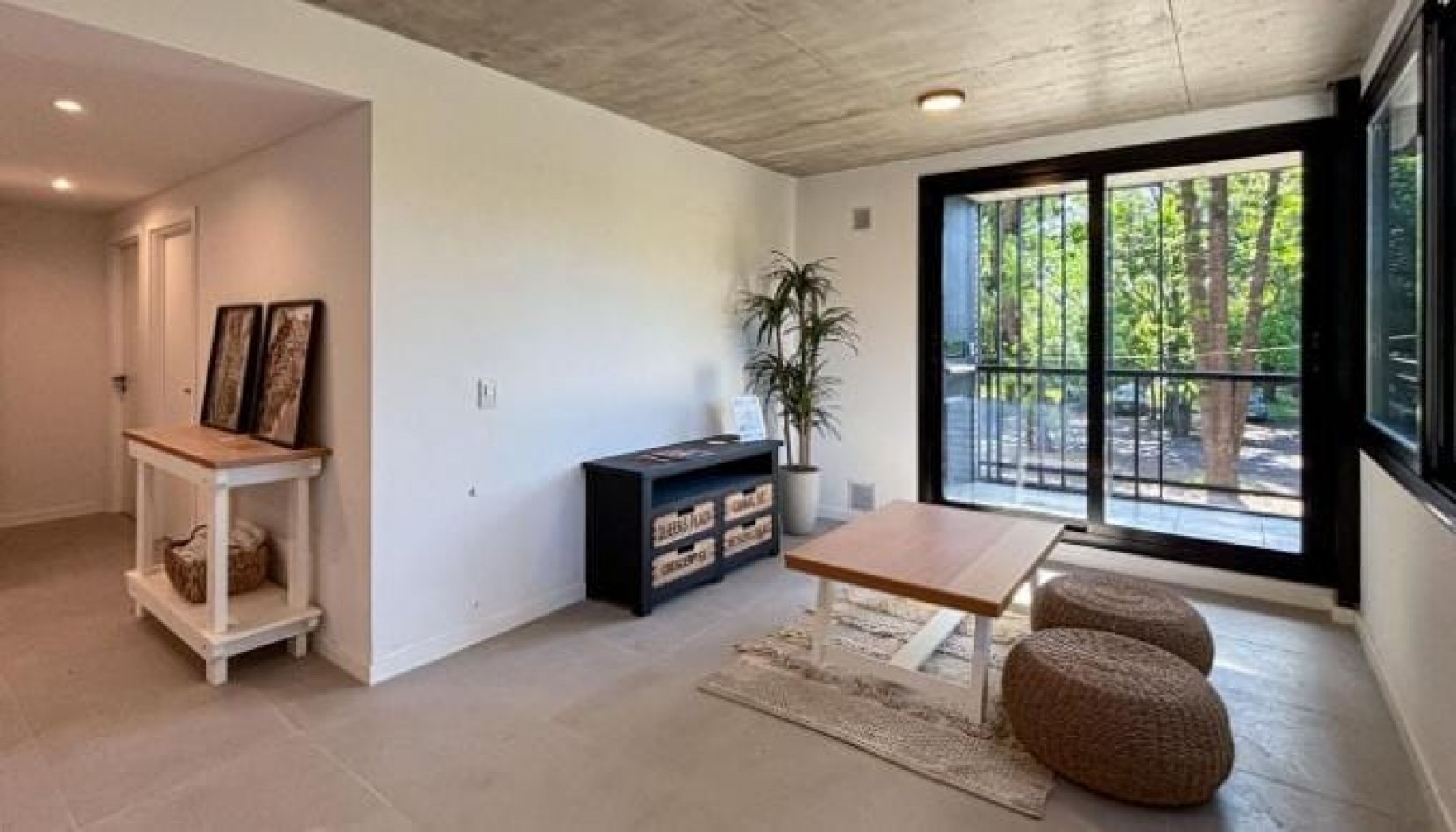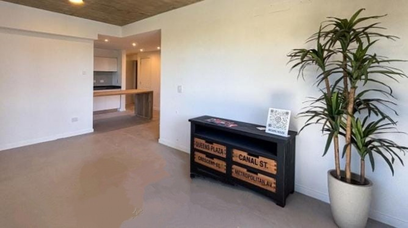 Se ingresa a un amplio ambiente conformado por el estar comedor con cocina integrada por barra separadora, baño completo y 2 dormitorios.