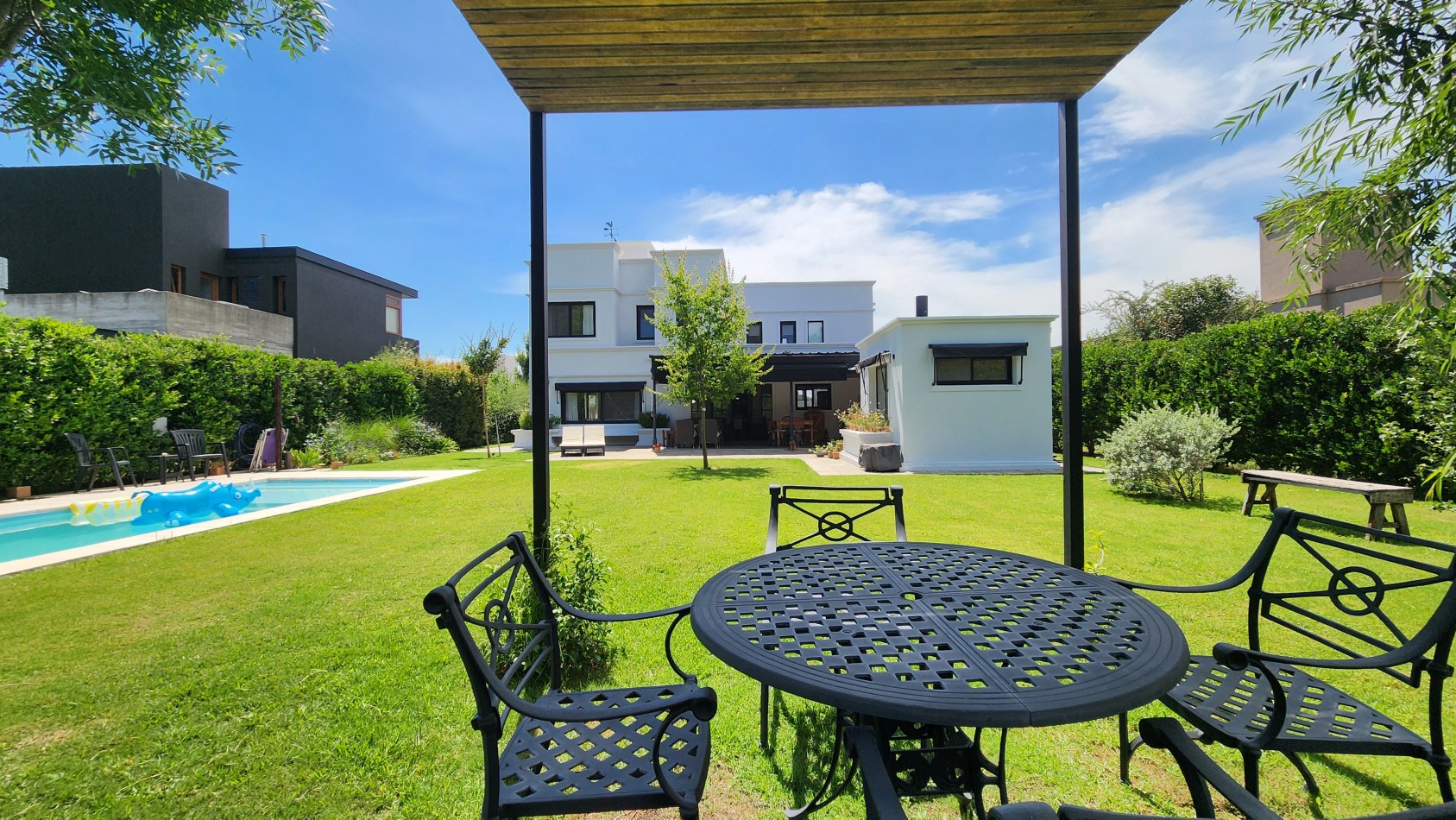 Todos los ambientes tienen vista al jardín a través de la galería cubierta con área social y con sector de parrillero. Un baño exterior acompañan este funcional diseño.