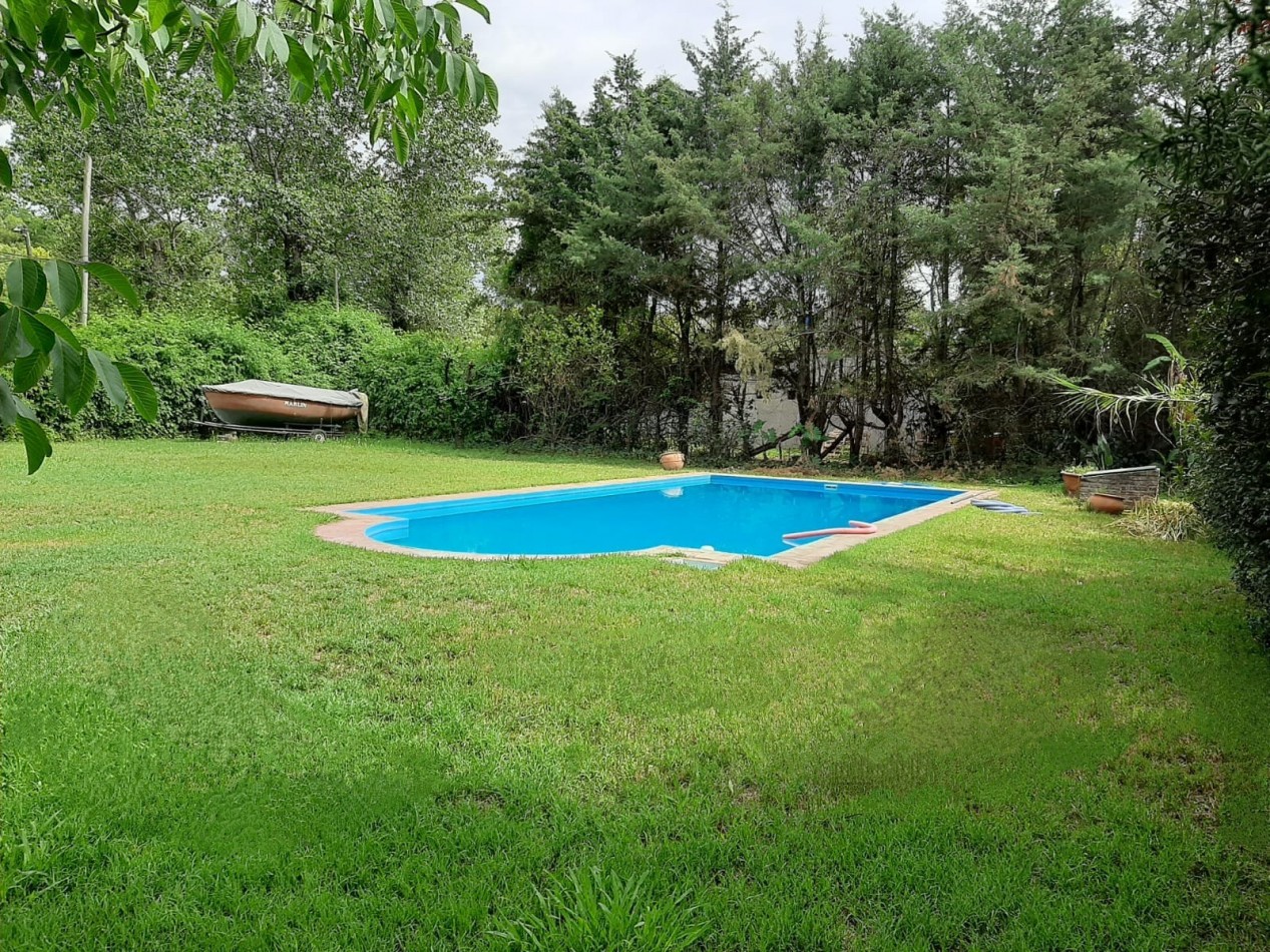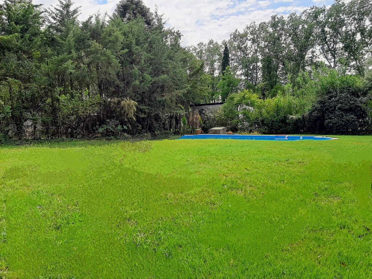 El terreno está compuesto por dos lotes unidos, con un frente de 24 m² y un fondo de 30 m². Se encuentra parcialmente cercado, cuenta con un amplio espacio parquizado con una pileta construida de 10x5 metros, equipada con bomba filtro y en excelente estado de uso y conservación.