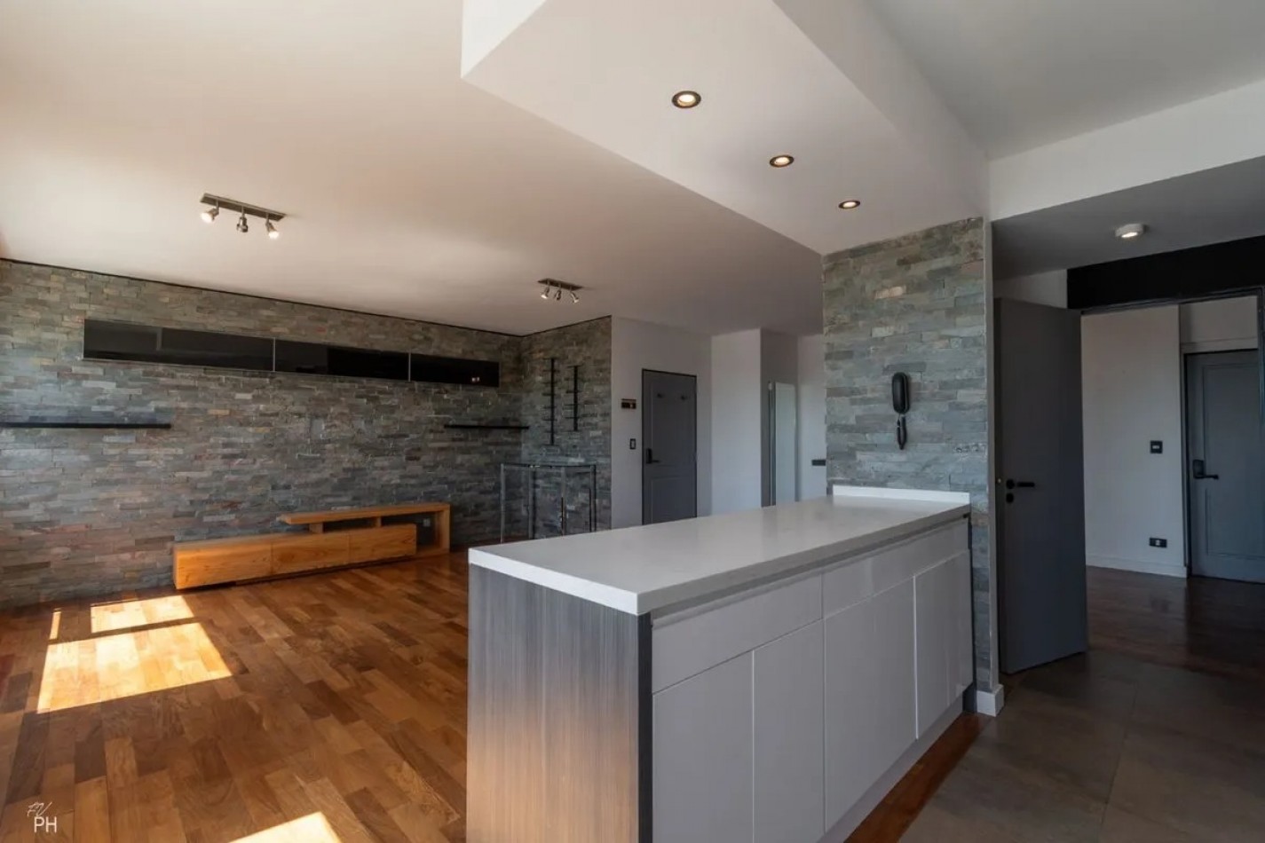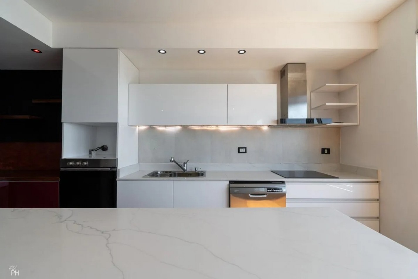 La cocina es semi-integrada, equipada con mobiliario de calidad premium, mesadas de silestone, barra desayunadora y lavavajillas. Lavadero independiente.