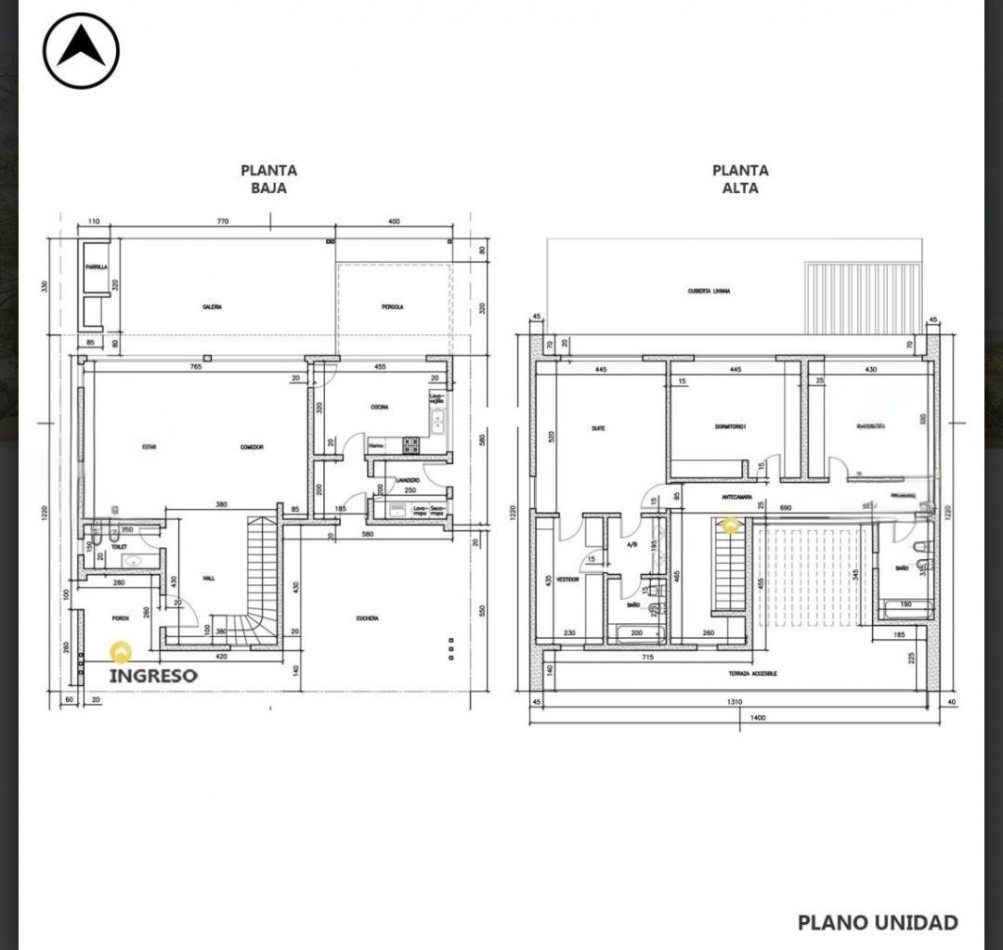 * Cielorraso suspendido de yeso en interior, cochera losa hormigón visto
