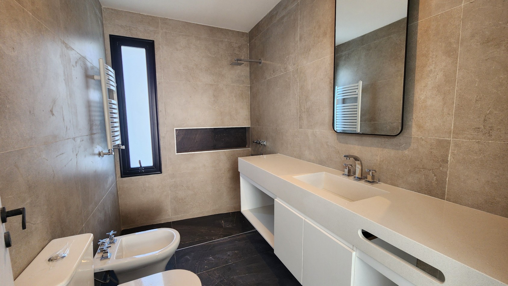 La calidad de los materiales es premium, aberturas de aluminio negro línea Modena y A30 New con DVH para mejorar la eficiencia energética y reducir el ruido exterior.